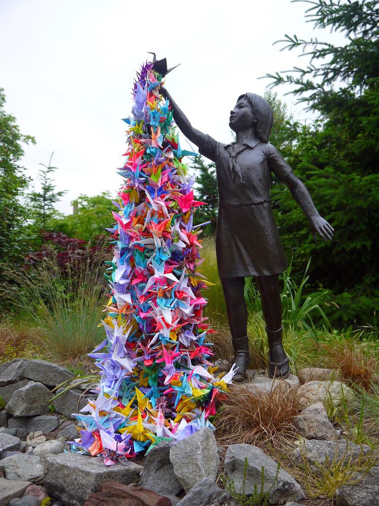 Sasaki Sadako contaba tan sólo con dos años cuando el ejército estadounidense soltó la bomba atómica sobre Hiroshima, el 6 de agosto de 1945. Aunque aparentemente no le había pasado nada, muchos años después, cuando estudiaba Primaria, le detectaron una leucemia, que se le había desarrollado como consecuencia de la exposición a la radiación. Durante el tiempo que estuvo ingresada en el hospital, Sasaki recibió la visita de una amiga, Chizuko, quien le dijo que podría curarse si lograba hacer mil grullas de papel, para pedirle a los dioses su curación. Motivada con este pensamiento y también con la idea de tener también la oportunidad de demandarles a los dioses el fin de los conflictos armados, empezó a hacer grullas de papel.